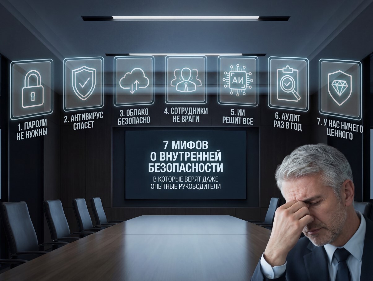 За пять лет проведения внутренних пентестов мы заметили закономерность: большинство компаний уверены в надежности своей защиты, пока не получают отчет с результатами проверки. Политики безопасности написаны, антивирусы установлены, сеть сегментирована. Но между теорией и реальностью часто лежит пропасть. Рассказываем о семи распространенных мифах, которые регулярно встречаем даже у зрелых организаций.